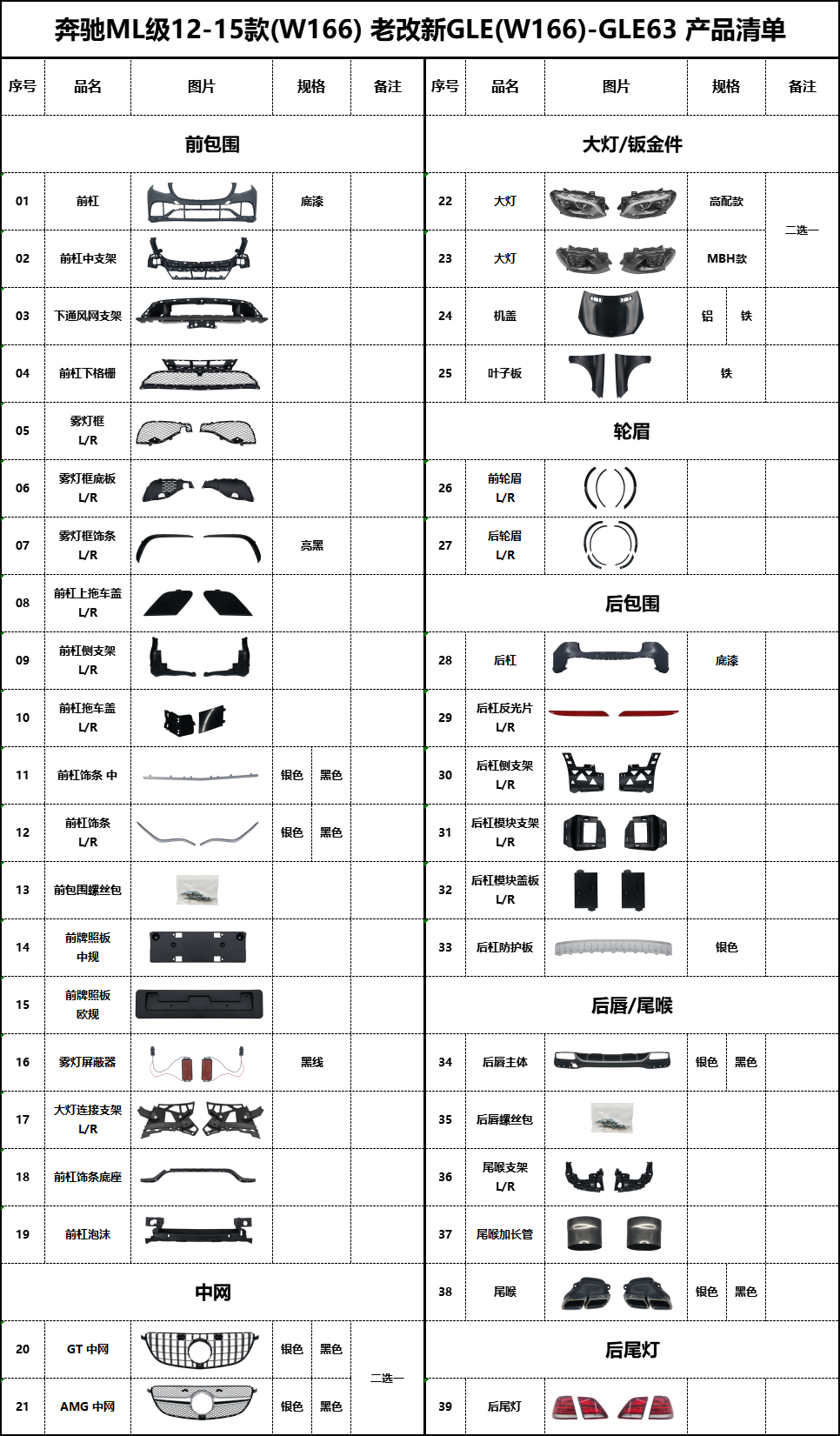 BZ-ML(W166)改GLE(W166)-AMG清单