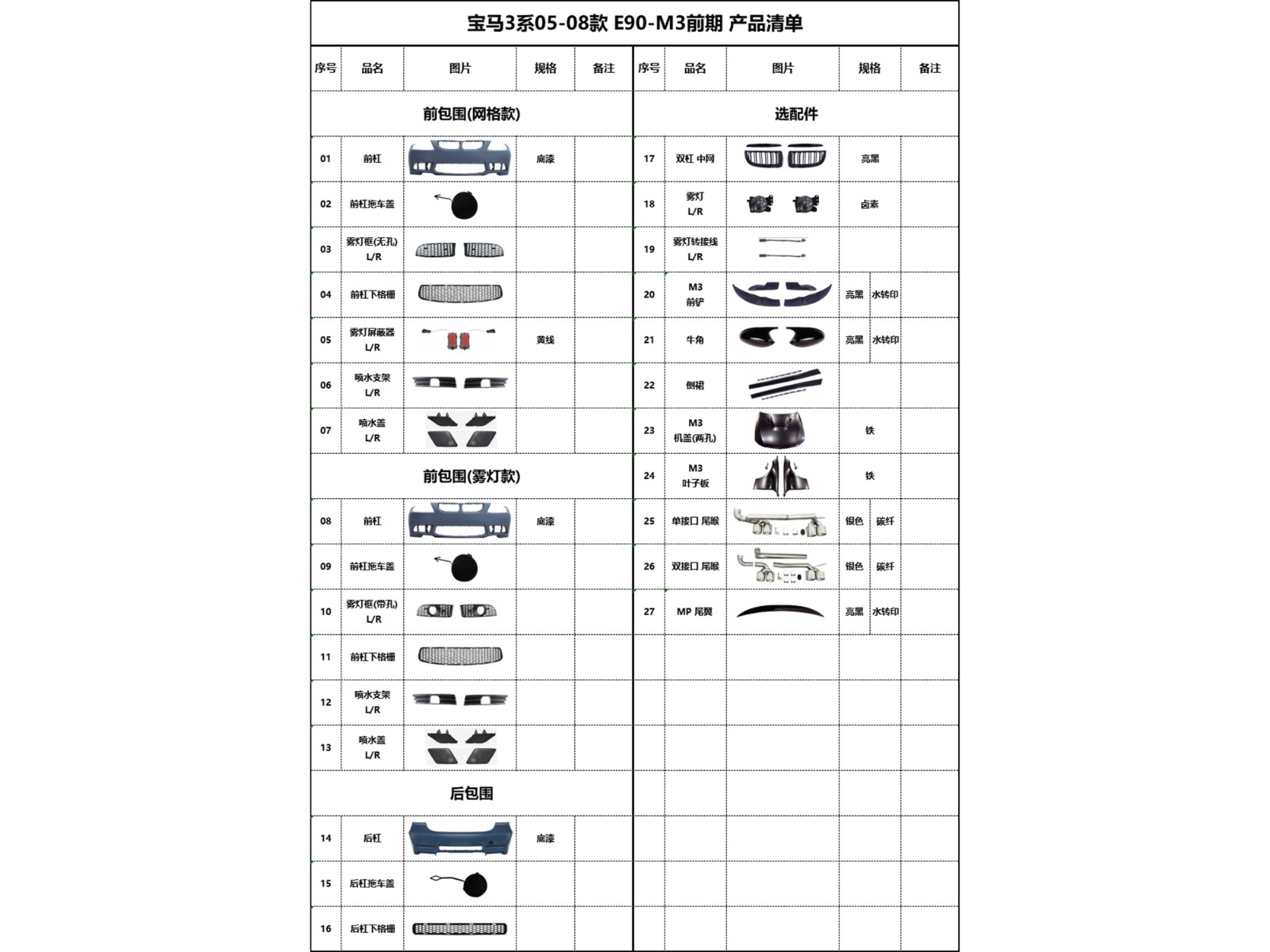 BM-E90-M3 later body kit (fog lamp version)