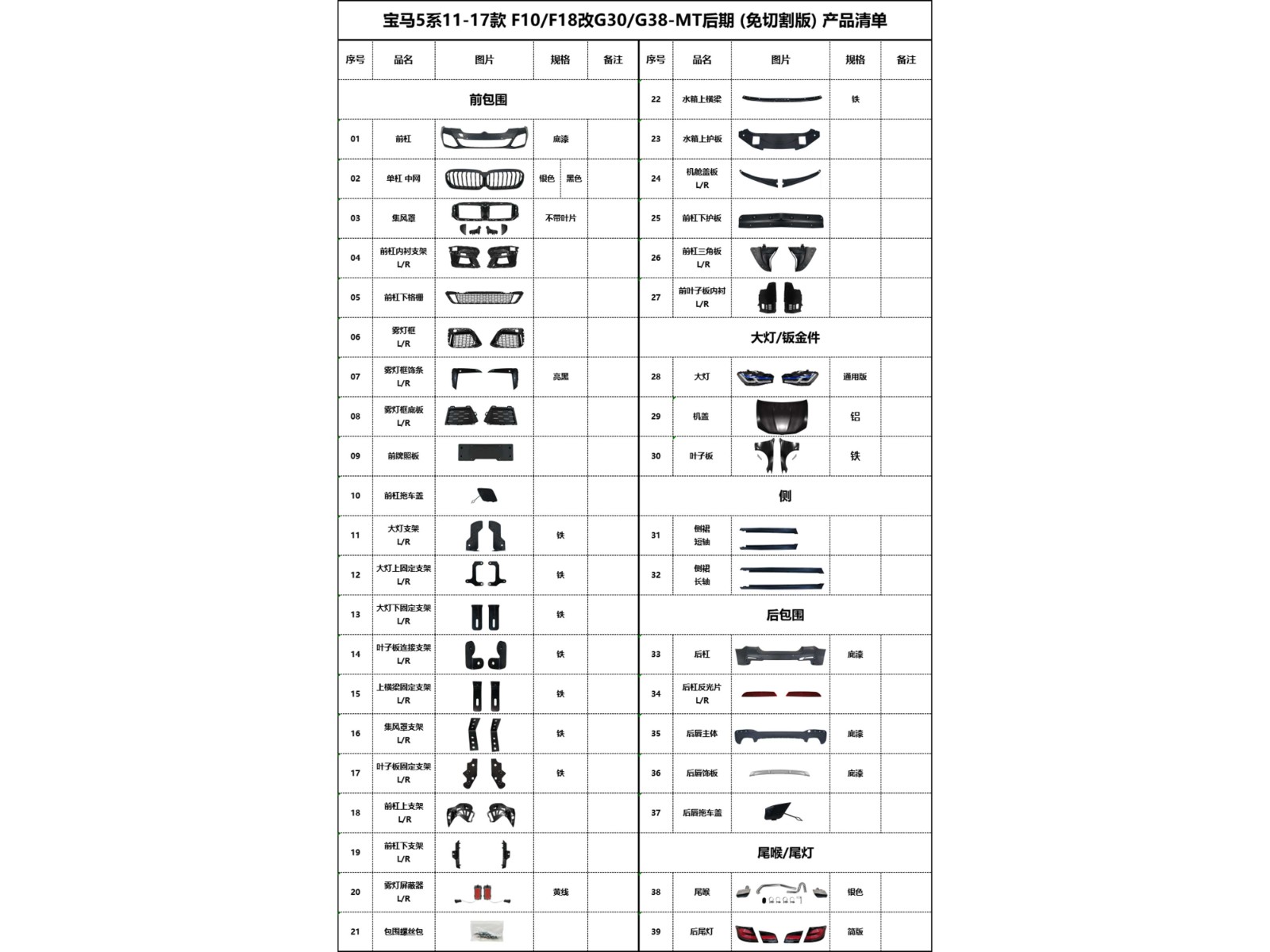 BM-F10 to G30-MT later stage (cut-free) product list