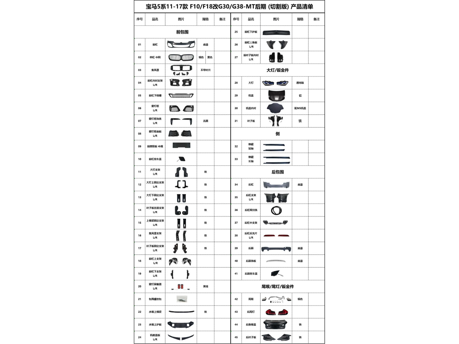 pngBM-F10 to G30-MT later stage (cut version) product list