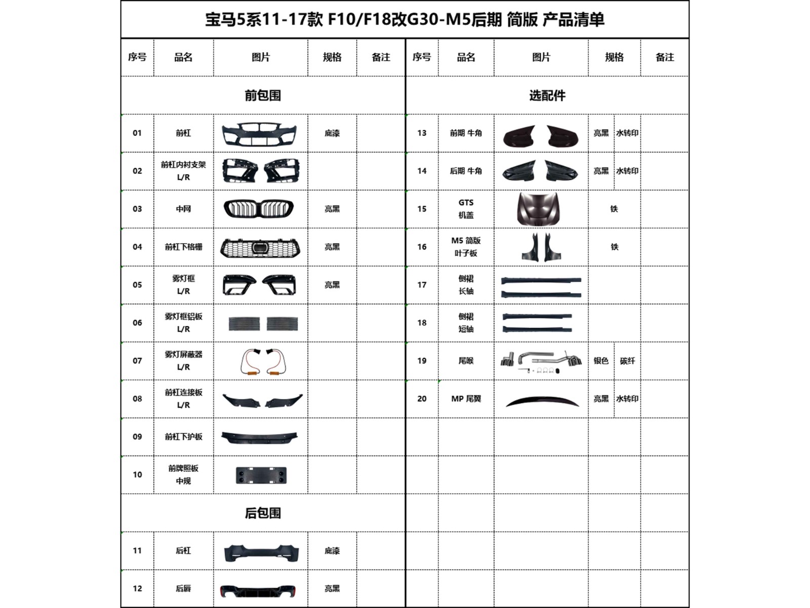 BM-F10 modified G30-M5 simplified version rear surround