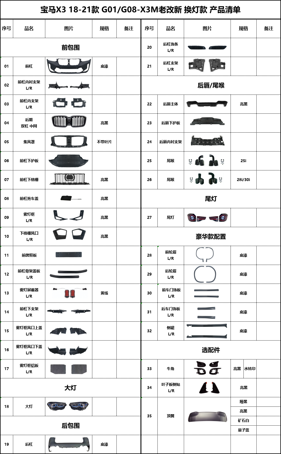 BM-G01老改新X3M换灯款包围(运动款)