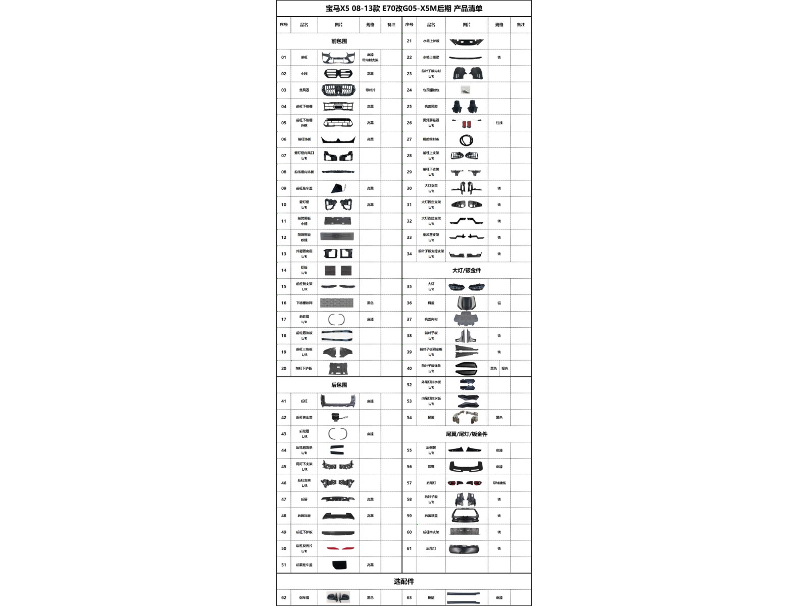 BM-E70 modified G05-X5M later product list