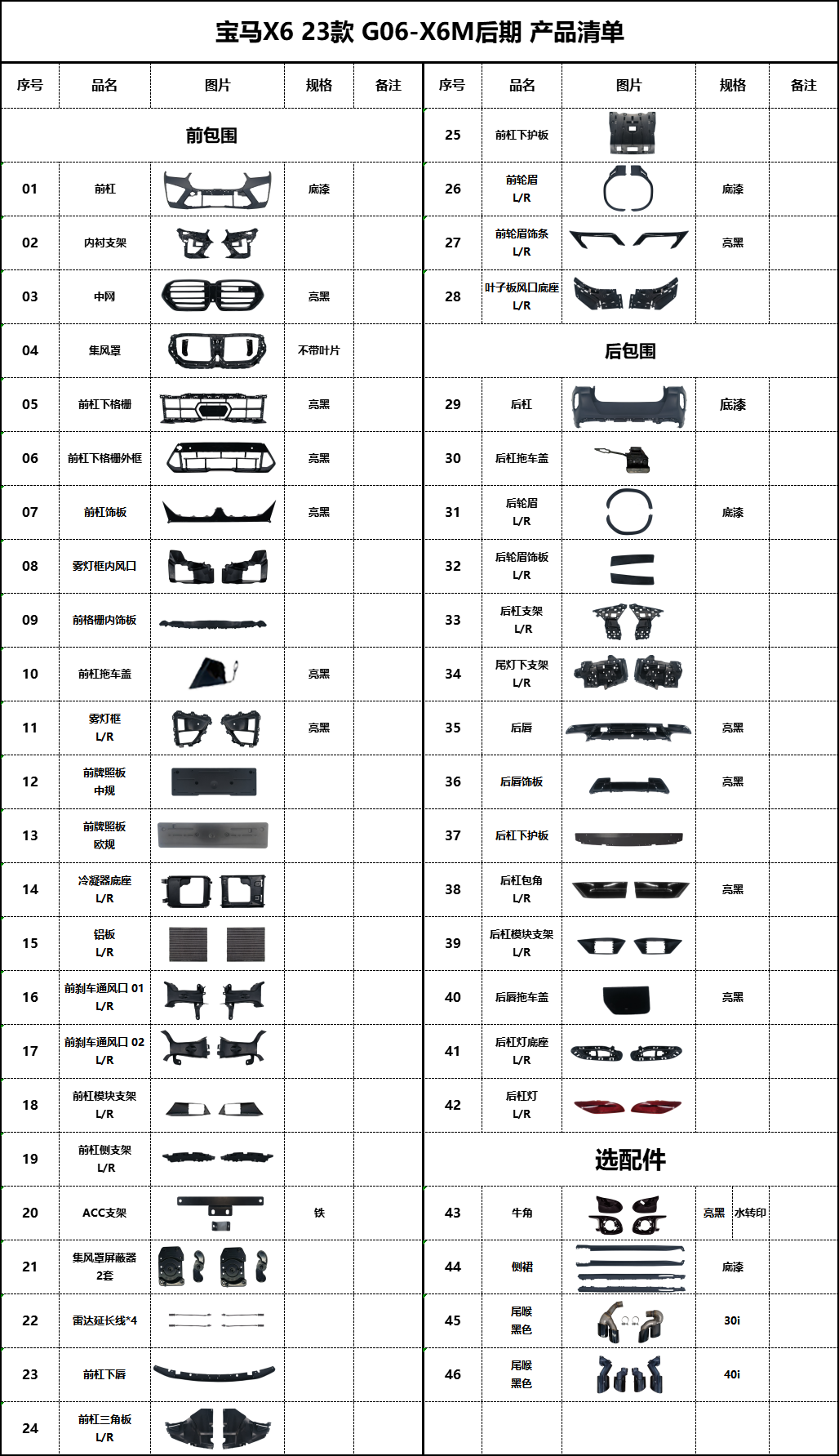 BM-G06-X6M后期产品清单