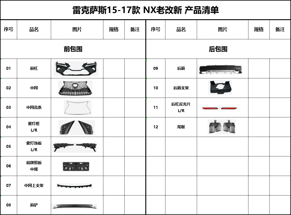 15改18款-产品清单