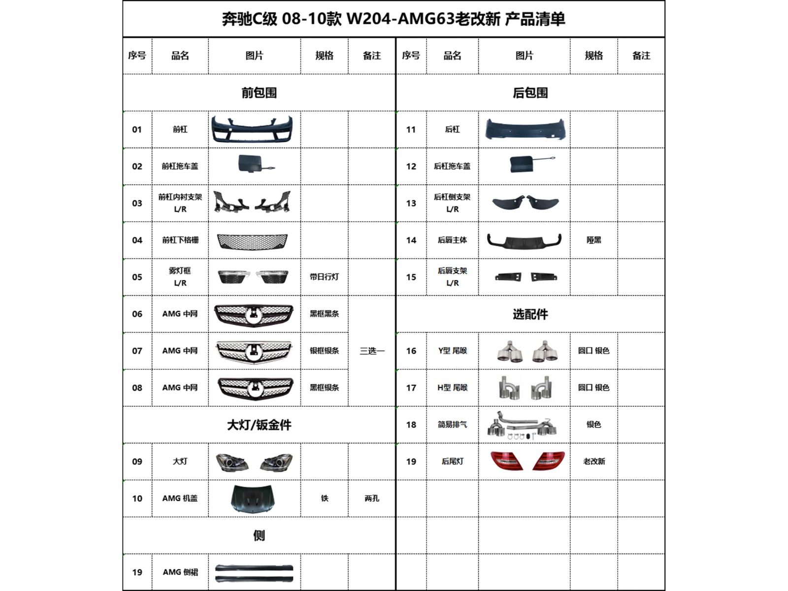 BZ-W204 Old to New AMG63 Product List