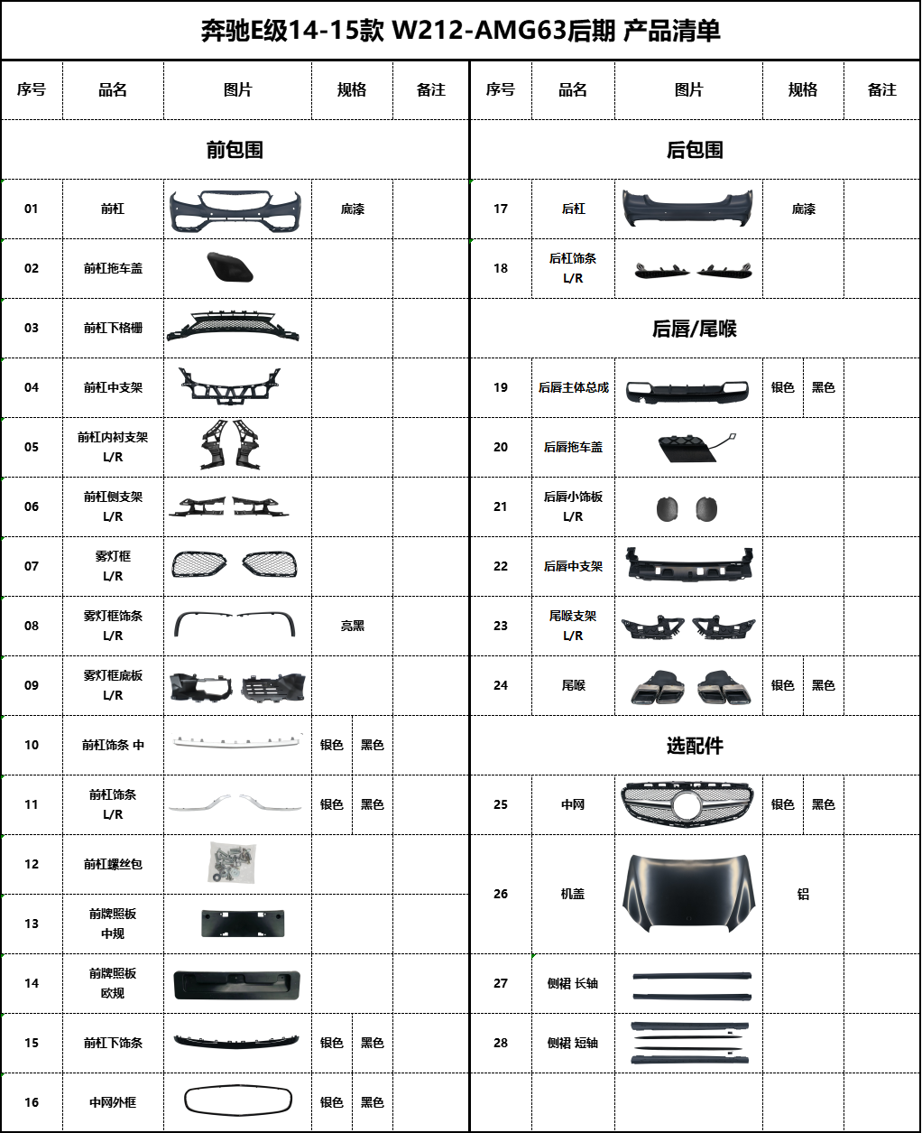 BZ-W212后期-AMG63包围产品清单