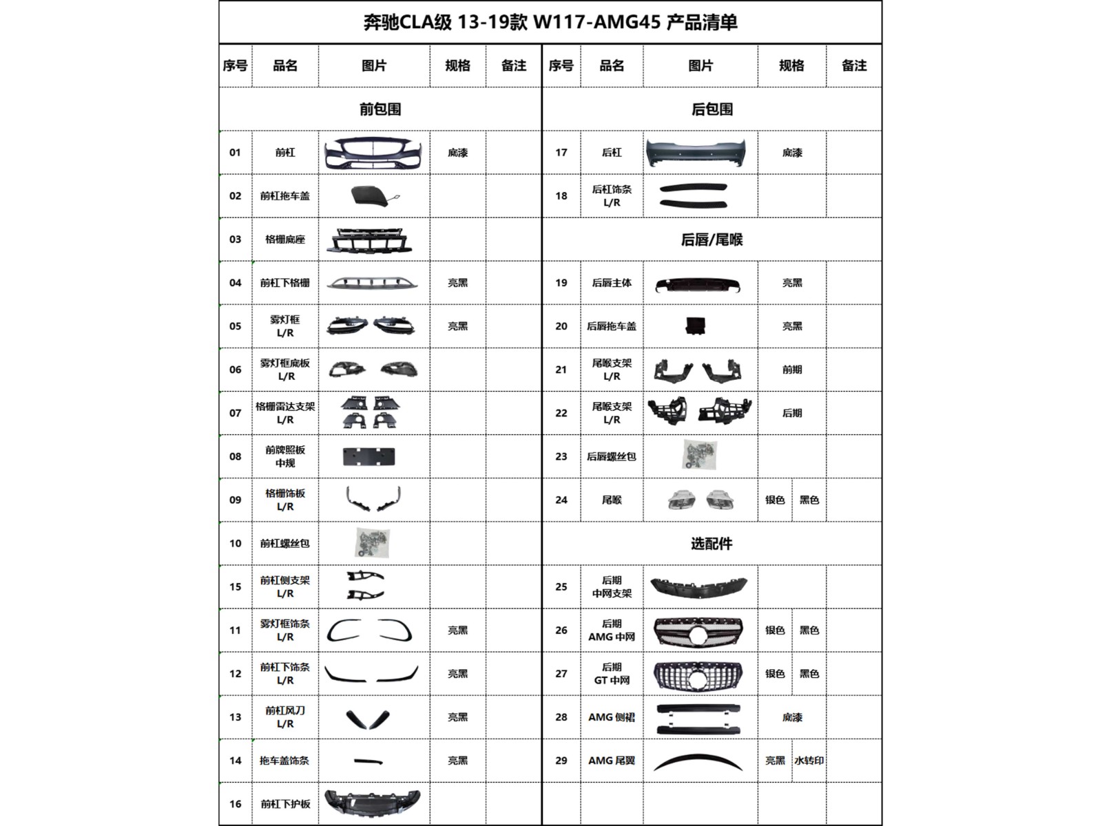 BZ-W117-AMG45 Product List