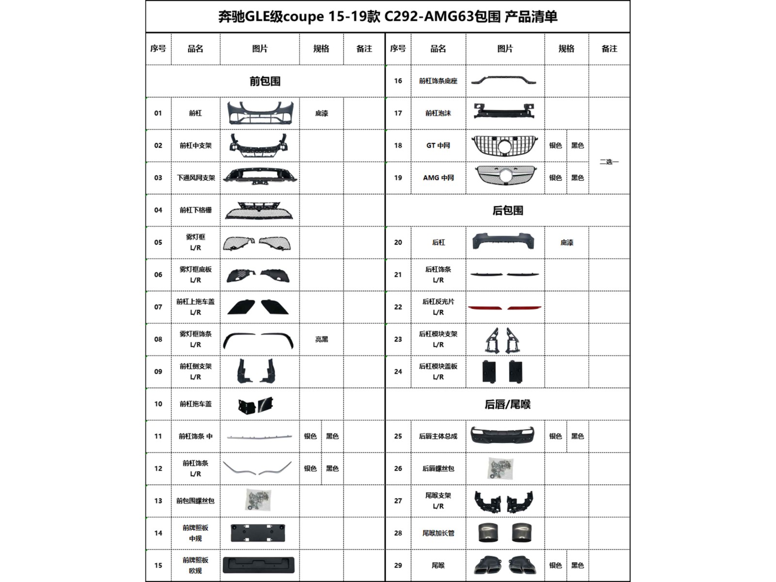 BZ-C292-AMG63 Product List