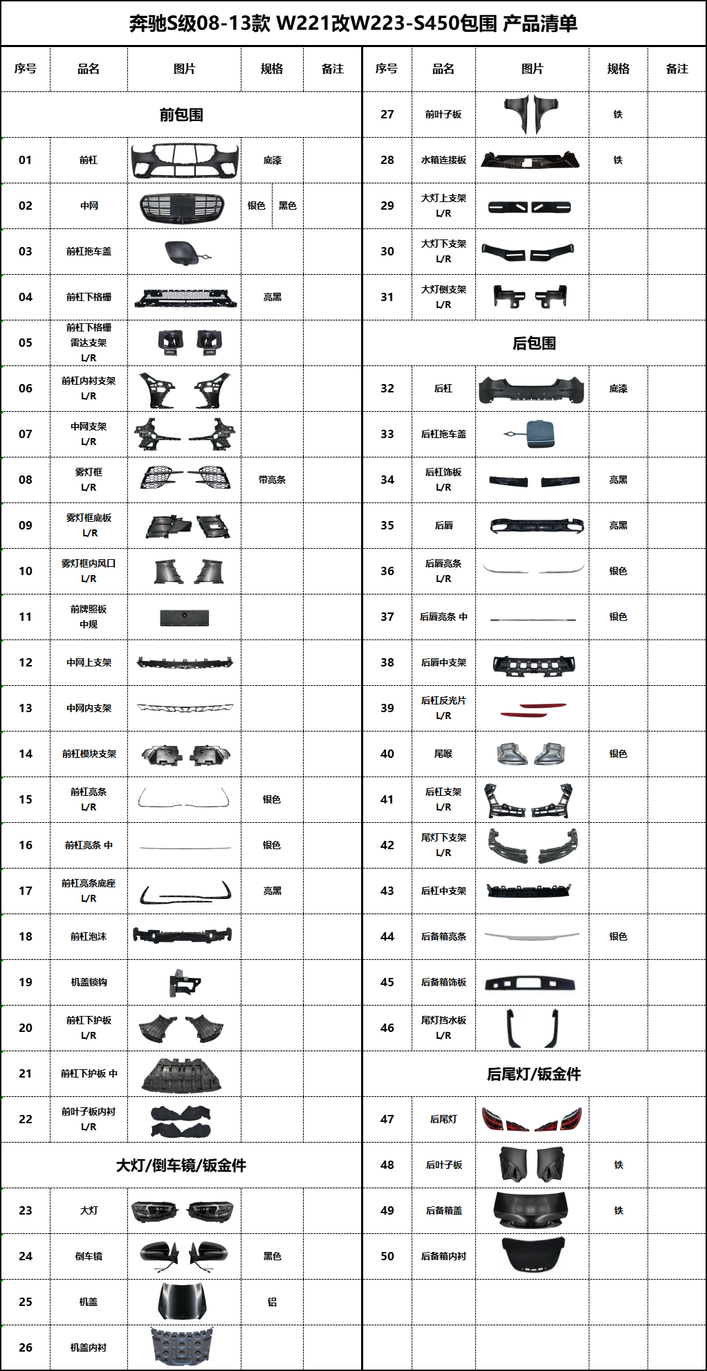 BZ-W221改W223-S450产品清单