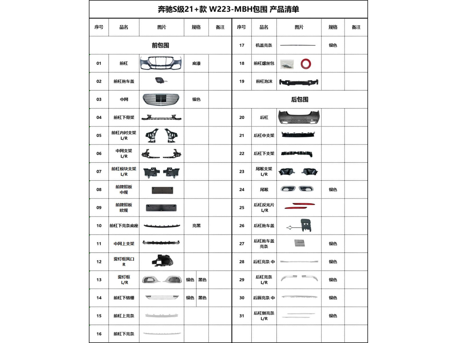 BZ-W223-MBH Product List